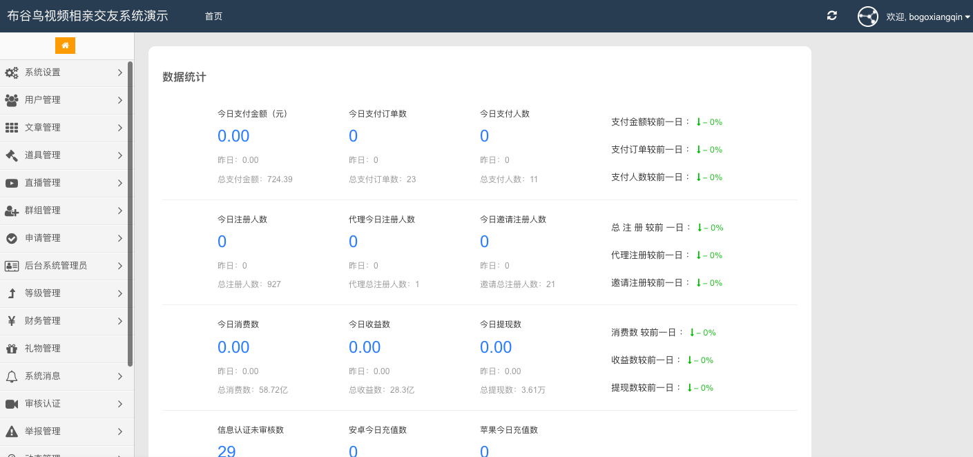最后还有布谷相亲软件源码开发时所应用到的三方配置,比如短信配置、视频配置、im配置、支付配置、登录配置、存储配置、域名绑定加速等配置。以下详细为大家剖析相亲婚恋app系统软件源码开发及运营人员常规要求的功能。