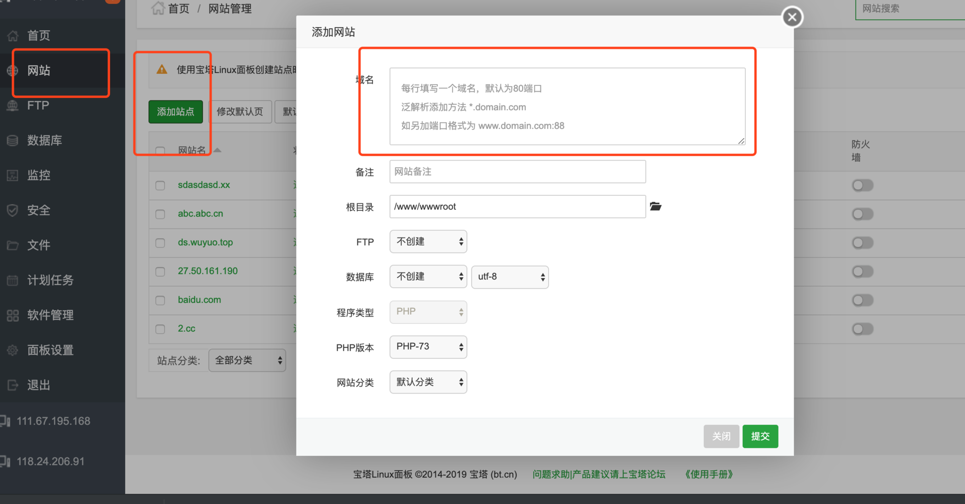 1、添加站点输入你解析好的域名